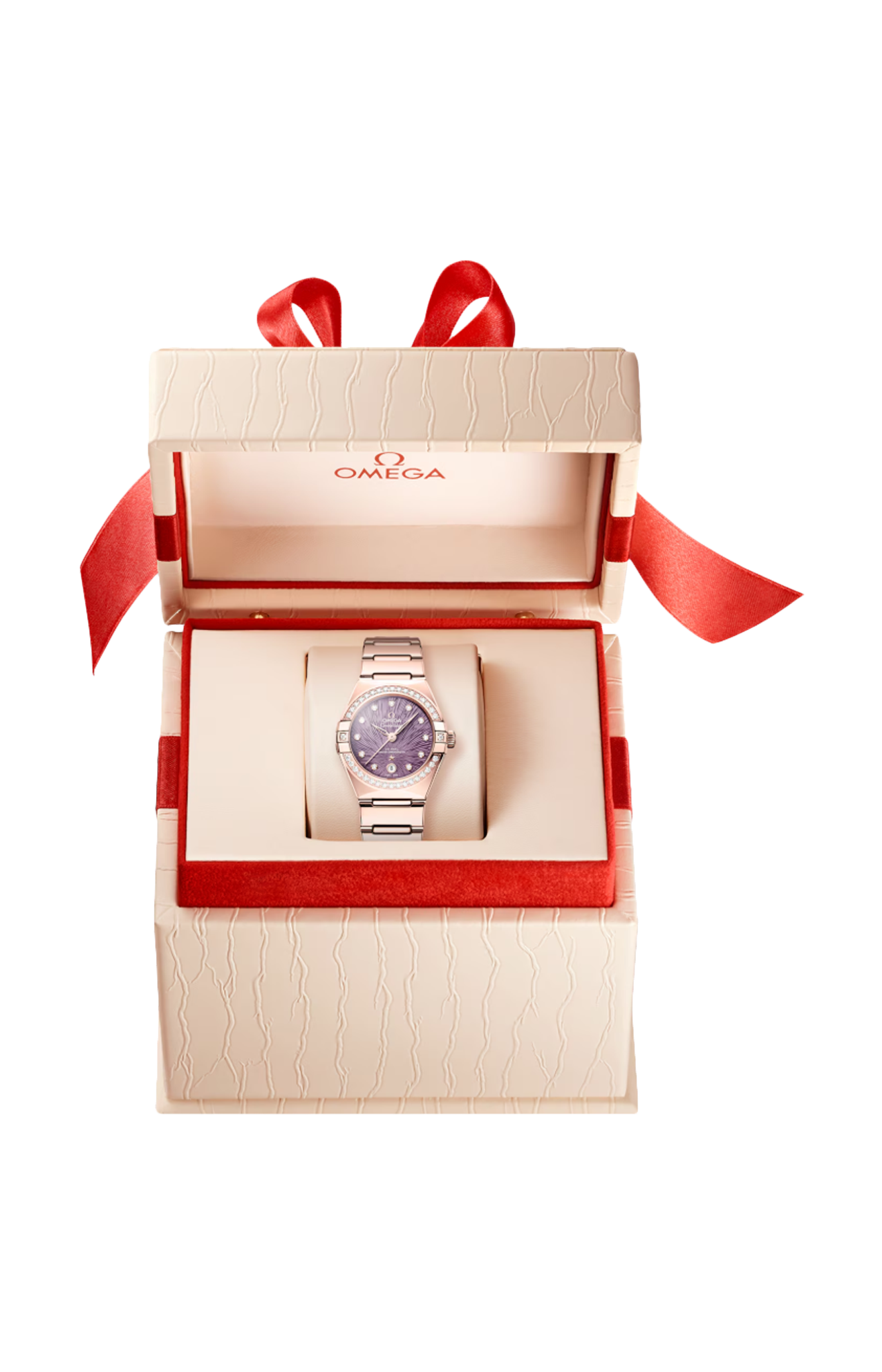 Unione di stile raffinato e precisione stellare, l'iconico Constellation di Omega è caratterizzato dalla celebre cassa con sfaccettature a mezzaluna e griffe lucide ai lati.