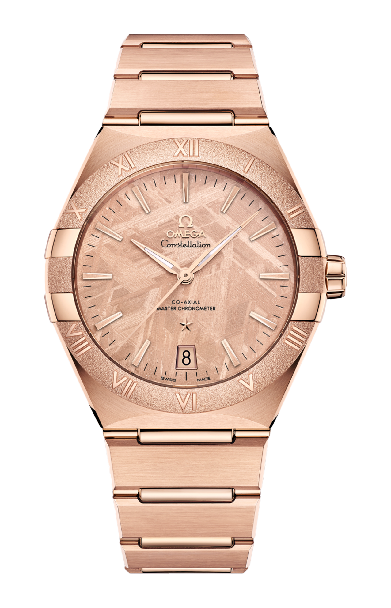Il Constellation di Omega dal 1952 prende ispirazione dal preciso movimento delle stelle. Per questo speciale modello, il tema stellare viene sublimato dalla scelta di un nuovo magnifico quadrante in meteorite. L’orologio presenta una cassa da 41 mm corredata da un bracciale “Mono Rang” in oro Sedna™ 18K e integra molte delle caratteristiche distintive della linea Constellation, come le griffe lucide, le sfaccettature a mezzaluna e i numeri romani ottenuti mediante ablazione al laser in rilievo positivo sulla lunetta.