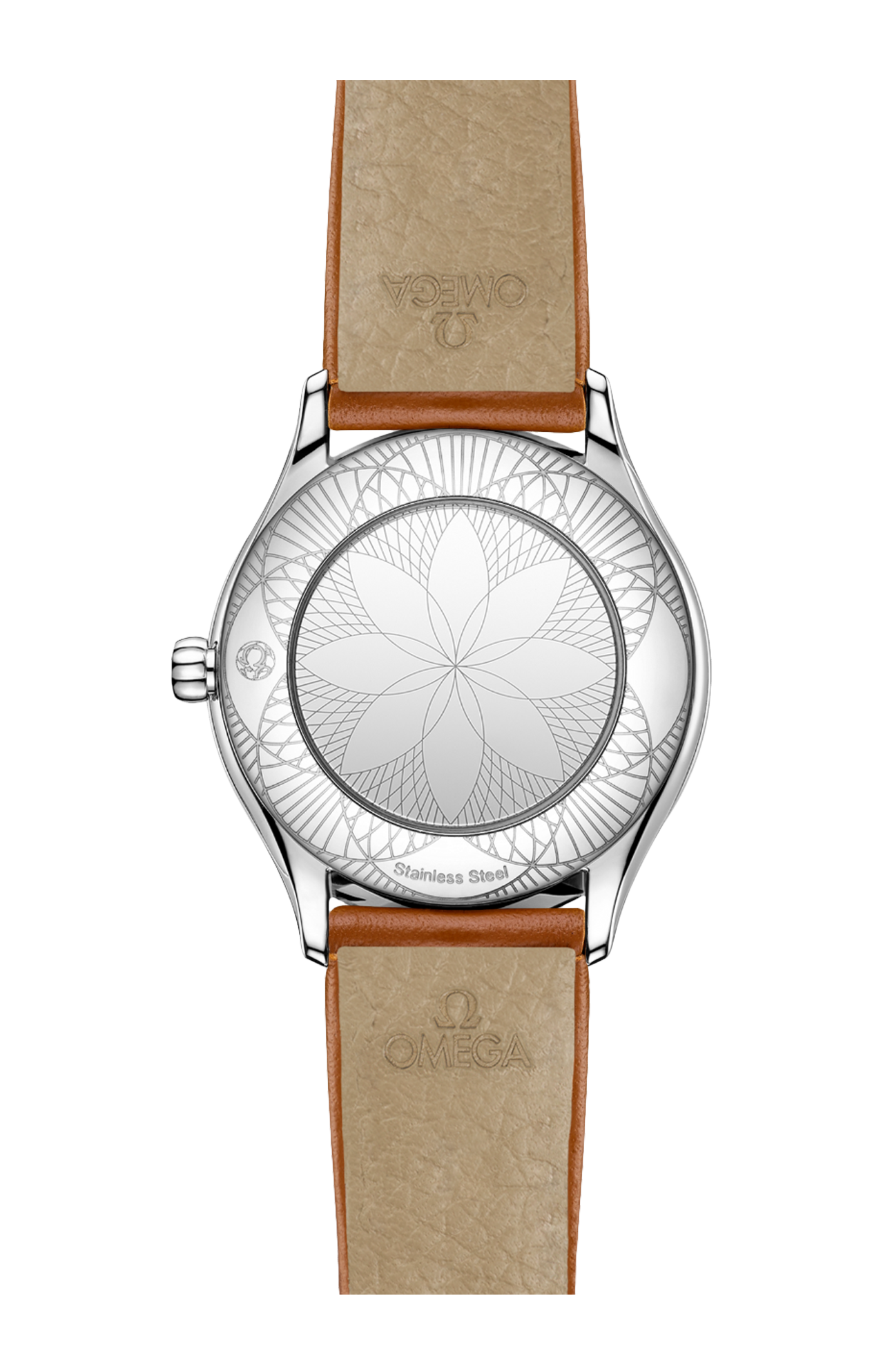 Corredato da un cinturino in pelle Novonappa oro con fibbia Trésor, l’orologio è animato dal calibro Omega 4061, alloggiato nello speciale fondello a specchio con motivo metallizzato “Her Time”.