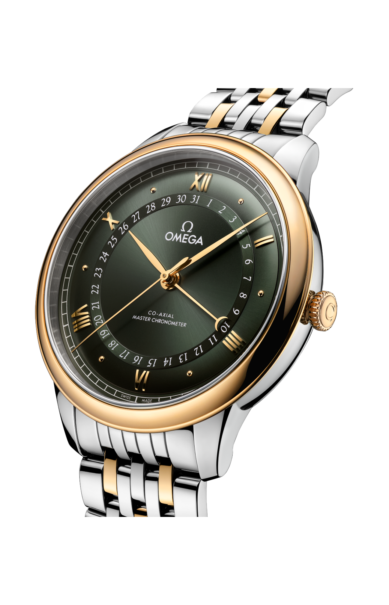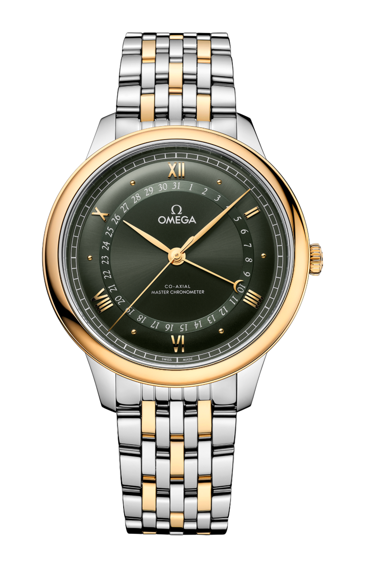 Corredato da un bracciale in acciaio inossidabile e oro giallo 18K, questo de Ville Prestige è animato dal calibro Co-Axial Master Chronometer 8936, visibile attraverso il fondello in vetro zaffiro.