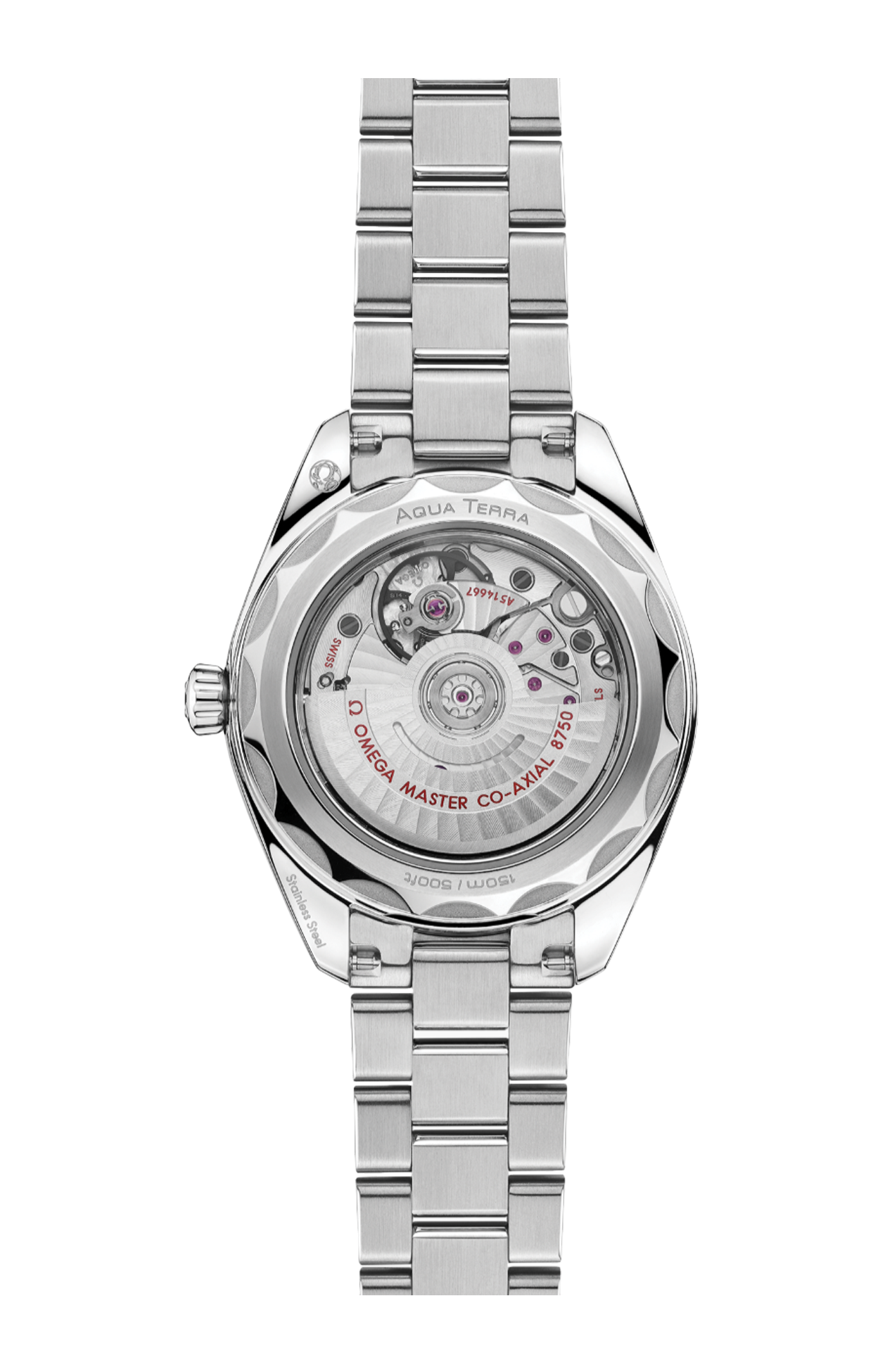 Il Seamaster Aqua Terra è un eccezionale tributo alla ricca tradizione marittima di OMEGA. Questo modello sottile con cassa da 30 mm deve le sue raffinate proporzioni all’innovativo calibro OMEGA Co-Axial Master Chronometer 8750, certificato dall’Istituto Federale Svizzero di Metrologia (METAS) secondo i più elevati standard stabiliti dal settore orologiero.