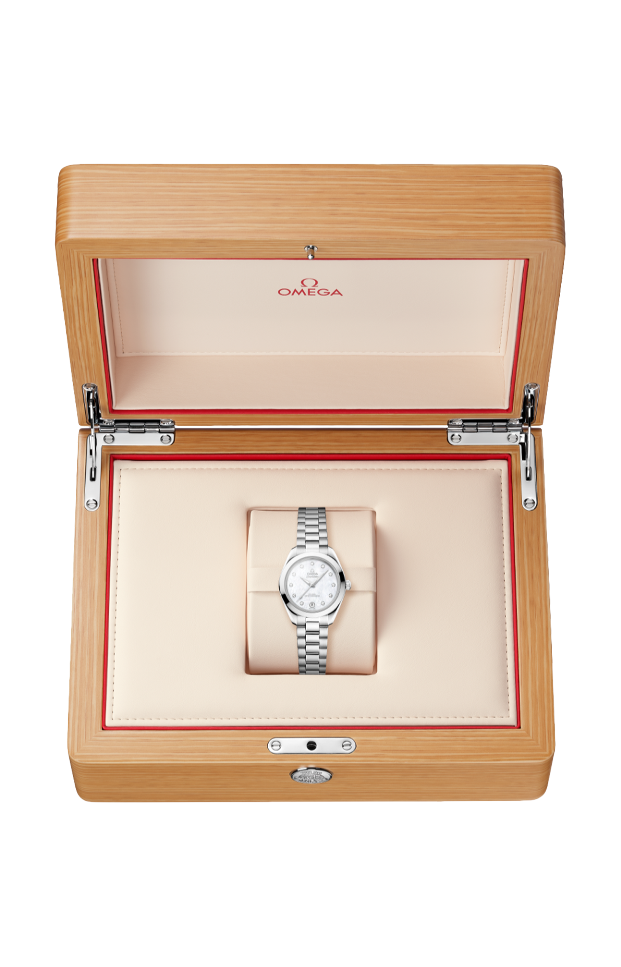 L’orologio è corredato da un bracciale integrato in acciaio inossidabile dotato di splendide maglie rotonde lucide e spazzolate, fibbia déployante con chiusura a farfalla e comodo sistema di regolazione OMEGA.