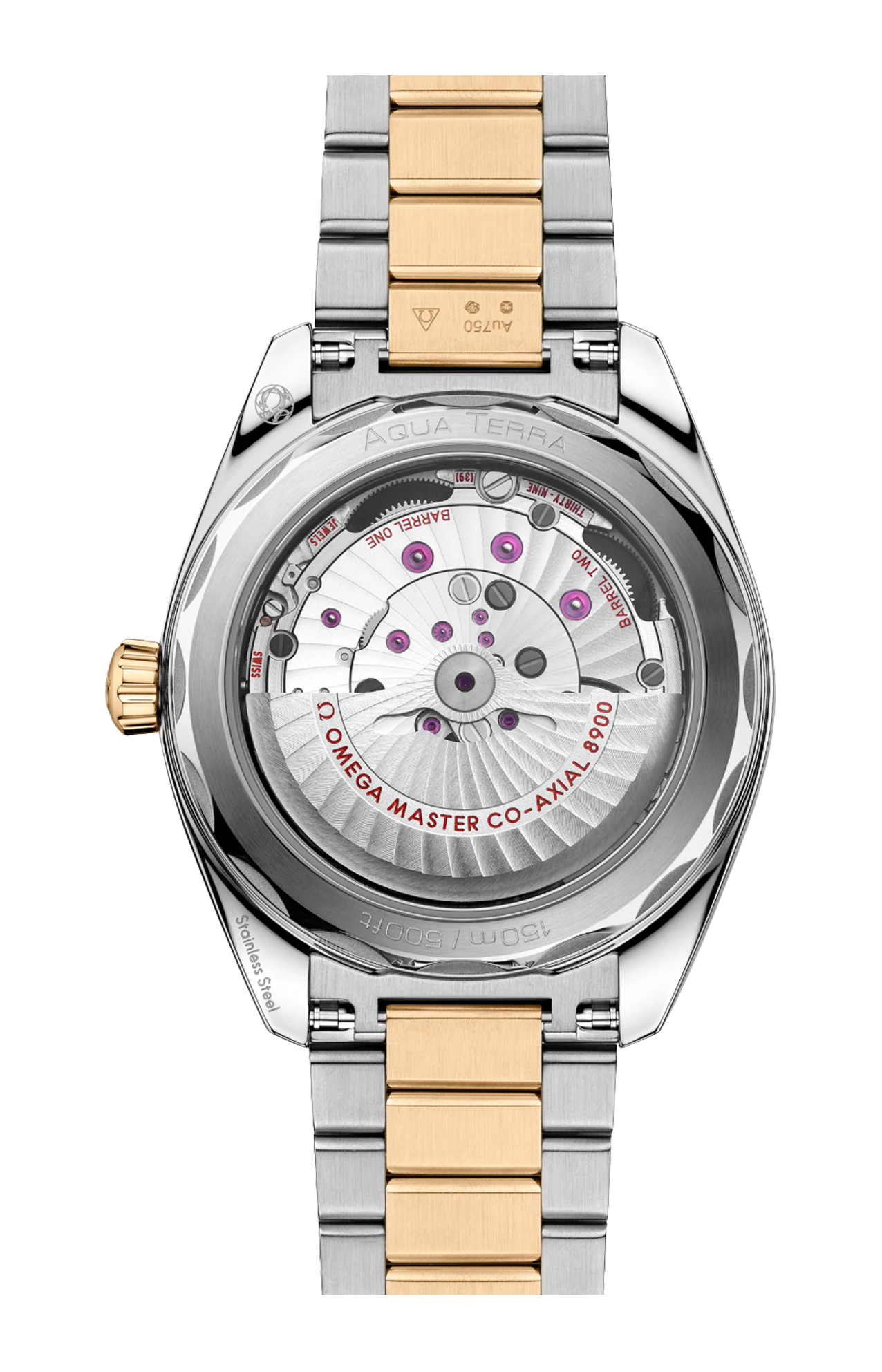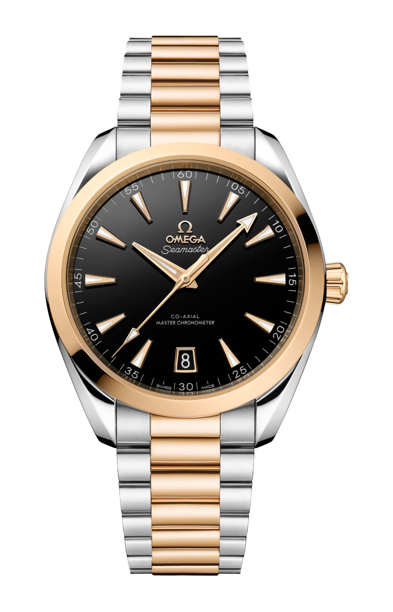 L’orologio è corredato da un bracciale integrato con maglie centrali lucide e maglie esterne spazzolate ed è animato dal calibro Omega Co-Axial Master Chronometer 8900, certificato dall’Istituto Federale Svizzero di Metrologia (METAS) secondo i più elevati standard stabiliti dal settore orologiero.