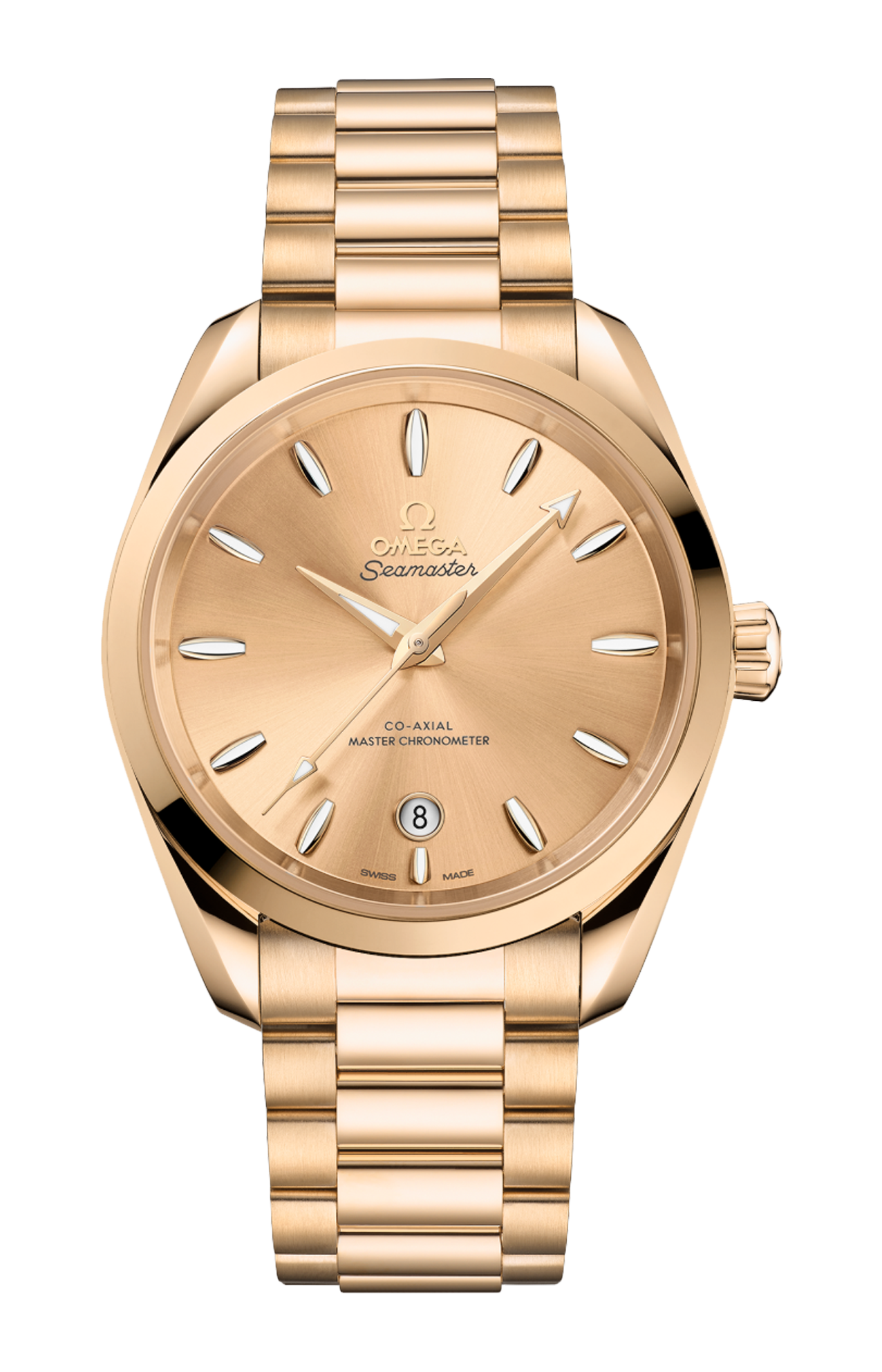 Corredato da un bracciale coordinato in oro Moonshine™ 18K, l’orologio è animato dal calibro Omega Co-Axial Master Chronometer 8801, certificato dall’Istituto Federale Svizzero di Metrologia (METAS) secondo i più elevati standard stabiliti dal settore orologiero.