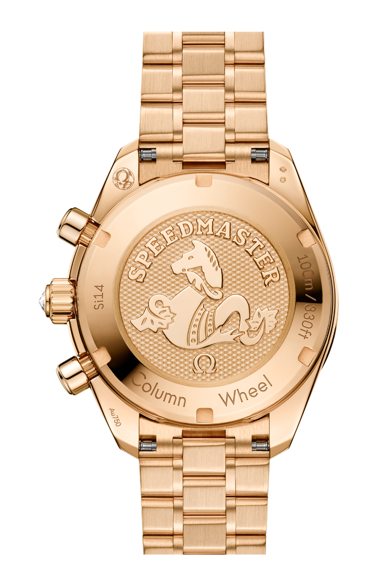 L’orologio vanta un bracciale in oro 18K Moonshine™ lucido e spazzolato con comodo sistema di regolazione brevettato Omega. Il fondello a vite reca impresso un medaglione con ippocampo. Cuore pulsante dell’orologio è il calibro Omega Co-Axial 3330.