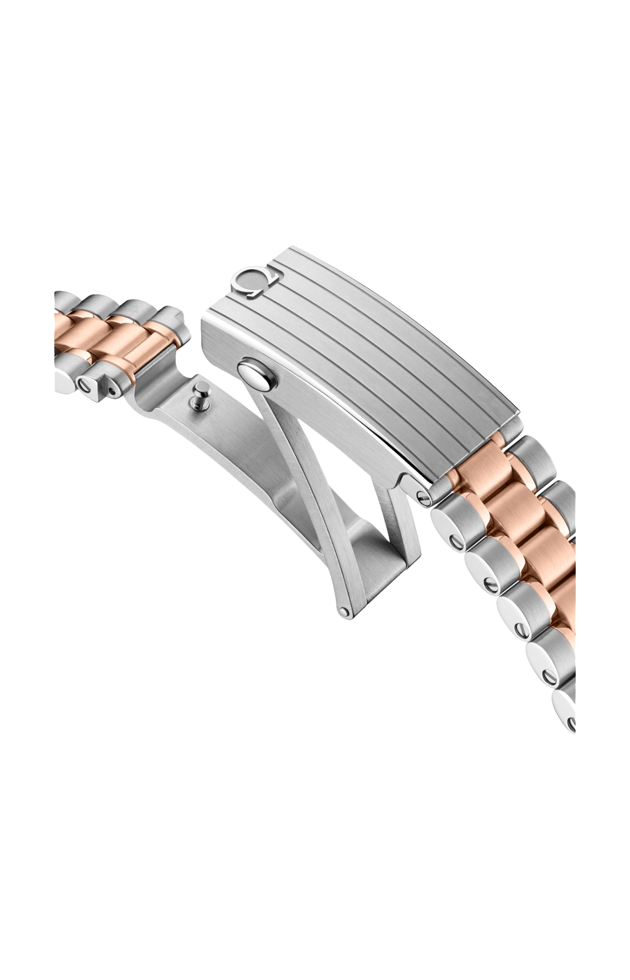 L’orologio è dotato di un bracciale lucido spazzolato con il comodo sistema di regolazione brevettato Omega, ed è animato dal calibro Omega Co-Axial Master Chronometer 3861.
