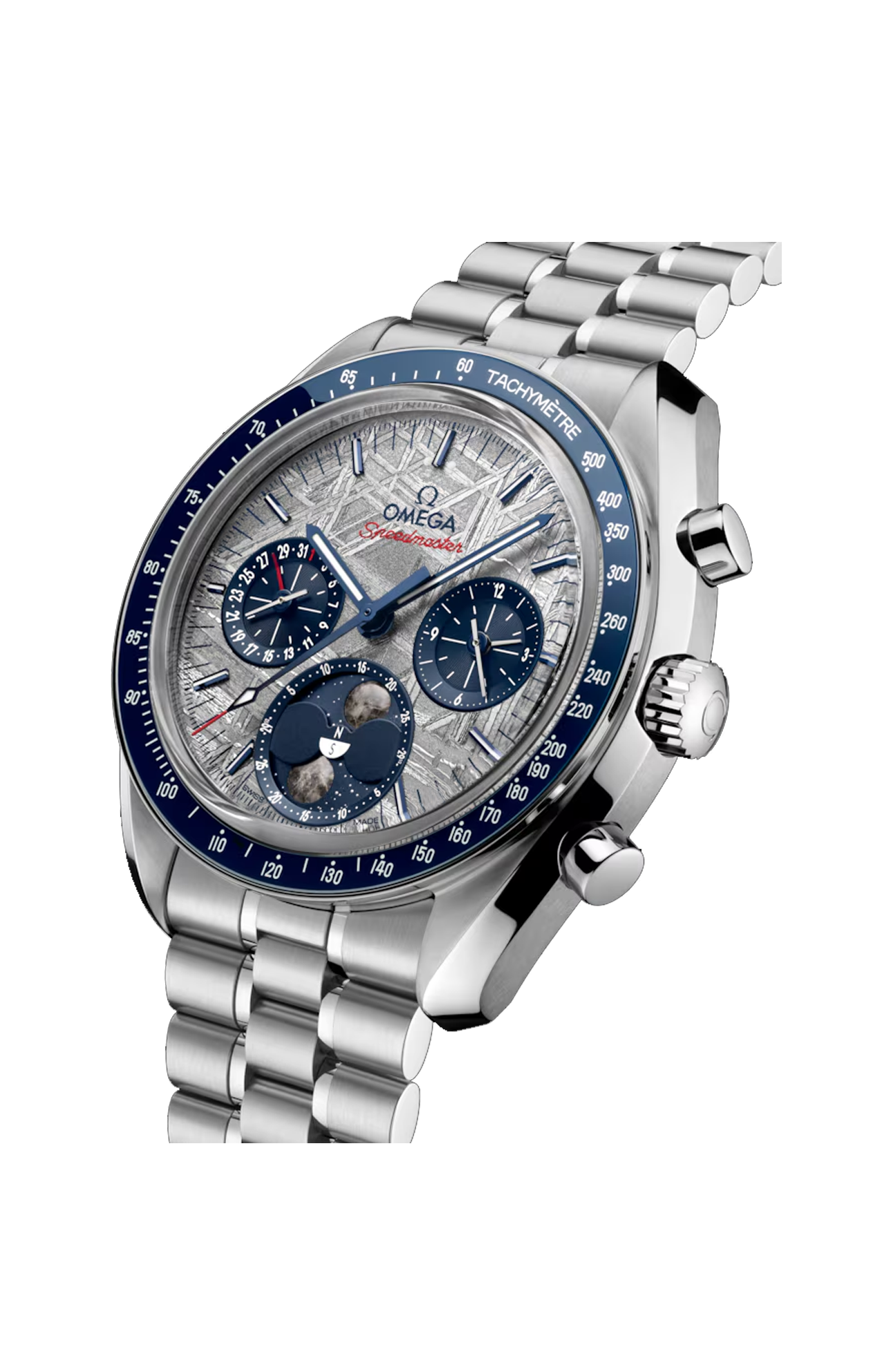 Lo Speedmaster è uno dei segnatempo più iconici di Omega, avendo partecipato a tutte e sei le missioni lunari. Questo orologio Moonphase con cassa da 43 mm dotato di due lune realizzate in vero meteorite lunare è un meraviglioso tributo al patrimonio spaziale distintivo della collezione.