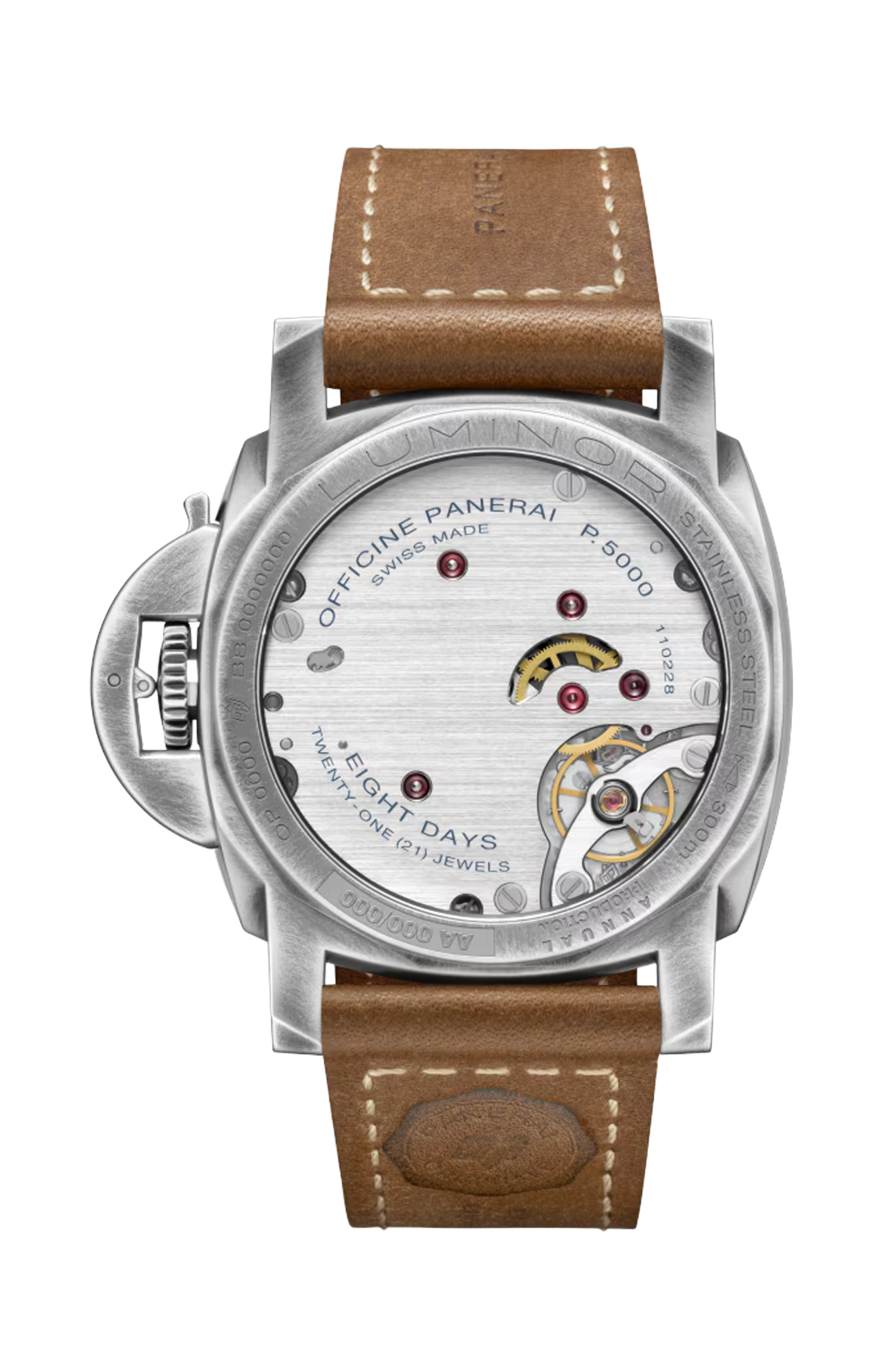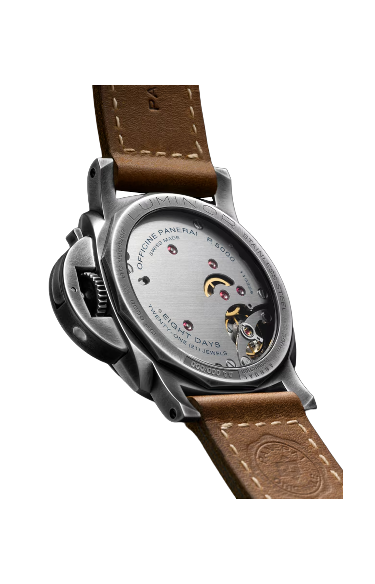Impermeabile fino a 30 bar (~300 metri), un risultato significativo per una costruzione di ispirazione vintage, il PAM01732 incarna la dedizione costante di Panerai a una robusta resistenza all’acqua, un’eredità che affonda le sue origini nella fornitura di strumenti subacquei per la Marina Militare Italiana. Sottoposto a test con margine del +25% tramite una verifica dell’impermeabilità articolata in più fasi, assicura prestazioni affidabili anche in condizioni estreme. Secondo cinturino incluso in caucciù nero.