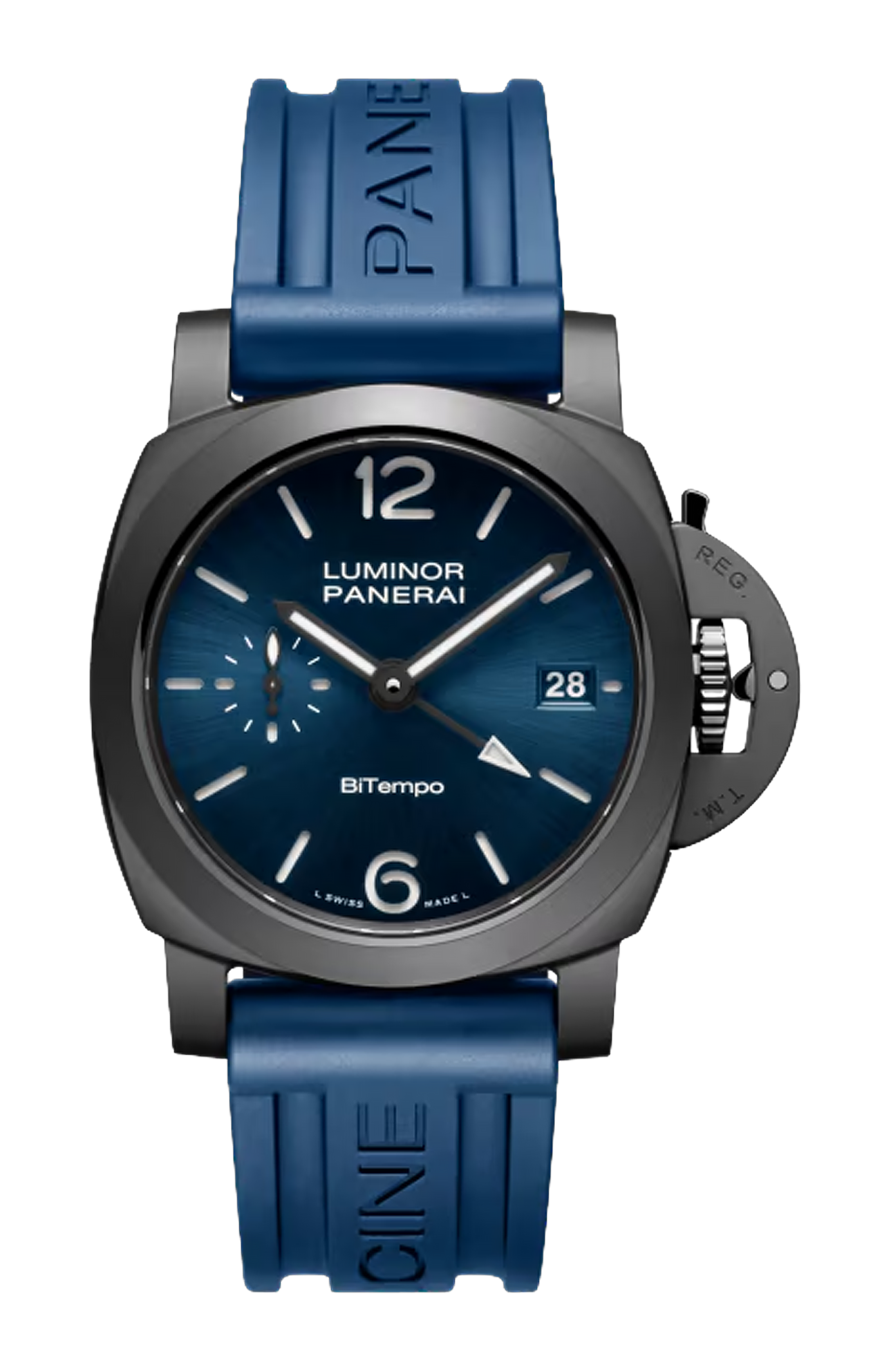 Il Panerai Luminor GMT Ceramica PAM01783 è un segnatempo che unisce l’identità storica del marchio con materiali moderni e una praticità pensata per l’uso quotidiano e da viaggio: la cassa da 40 mm, realizzata in ceramica nera sabbiata con finiture micro-sabbiate e lucide inclusa la protezione della corona, conferisce leggerezza, resistenza a urti, graffi e corrosione, regalando un comfort al polso superiore rispetto all’acciaio. Il quadrante “sandwich” blu sun-brushed con numeri arabi e indici in Super-LumiNova bianca offre una leggibilità eccellente anche al buio, con prospetto chiaro ed elegante nel giorno, e ospita a ore 3 la data e a ore 9 il piccolo secondi, mentre la lancetta centrale GMT con punta a freccia luminescente permette di tenere sotto controllo un secondo fuso orario in modo discreto e funzionale. All’interno pulsa il movimento automatico di manifattura P.900/GMT, con 23 rubini, 28.800 alternanze/ora, dispositivo anti-urto Incabloc e riserva di carica di 3 giorni (72 ore), che assicura affidabilità e continuità senza compromessi, visibile attraverso il fondello trasparente in vetro zaffiro fumé. L’impermeabilità fino a 30 bar (~300 metri) lo rende adatto anche a contesti sportivi o subacquei, mentre il sistema di cinturini intercambiabili “PAM Click Release System™” — con cinturino in pelle nera e cinturino aggiuntivo in gomma blu — unisce versatilità e praticità, permettendo di adattare l’orologio a stile e occasione. Questo modello, realizzato in edizione limitata a 80 pezzi e disponibile esclusivamente online, rappresenta una fusione riuscita tra heritage militare-navale, ingegneria contemporanea e dimensioni più contenute, ideale per chi cerca un orologio moderno, discreto, ma con forte personalità e prestazioni da segnatempo professionale.