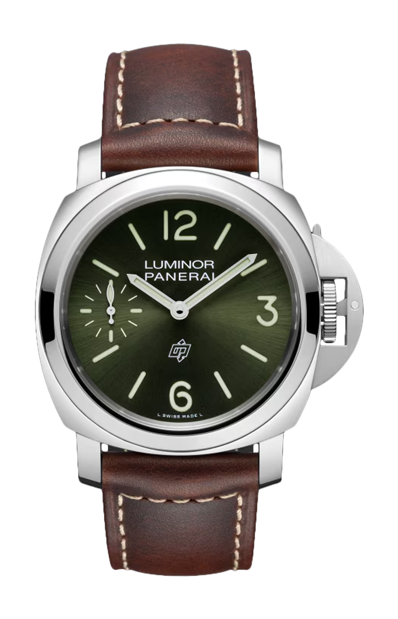 Il Panerai Luminor Logo PAM01624 è un segnatempo essenziale che incarna il DNA storico della Maison con una forte personalità contemporanea: la cassa in acciaio da 44 mm, caratteristica della linea Luminor, è impreziosita dal dispositivo proteggi-corona brevettato che garantisce protezione e riconoscibilità immediata, e avvolta da un vetro zaffiro bombato antiriflesso. Sul quadrante verde sun-brushed spiccano numeri arabi e indici trattati con Super-LumiNova®, mentre il contatore dei piccoli secondi è posizionato a ore 9, conferendo equilibrio al design; a ore 6, il celebre logo “OP” di Panerai aggiunge un dettaglio distintivo. Il movimento è il calibro manuale P.6000, un meccanismo di manifattura con carica manuale, 19 rubini, frequenza di 21.600 alternanze/ora e riserva di carica di circa 72 ore (3 giorni), che unisce semplicità e affidabilità. La resistenza all’acqua è garantita fino a 10 bar (circa 100 metri), rendendo il modello adatto anche per attività quotidiane. Il cinturino in pelle Ponte Vecchio marrone scuro, dotato di cuciture beige e sistema di sgancio rapido “PAM Click Release”, assicura comfort e versatilità, mentre la fibbia trapezoidale in acciaio completa l’insieme con eleganza. Secondo cinturino incluso caucciù verde.