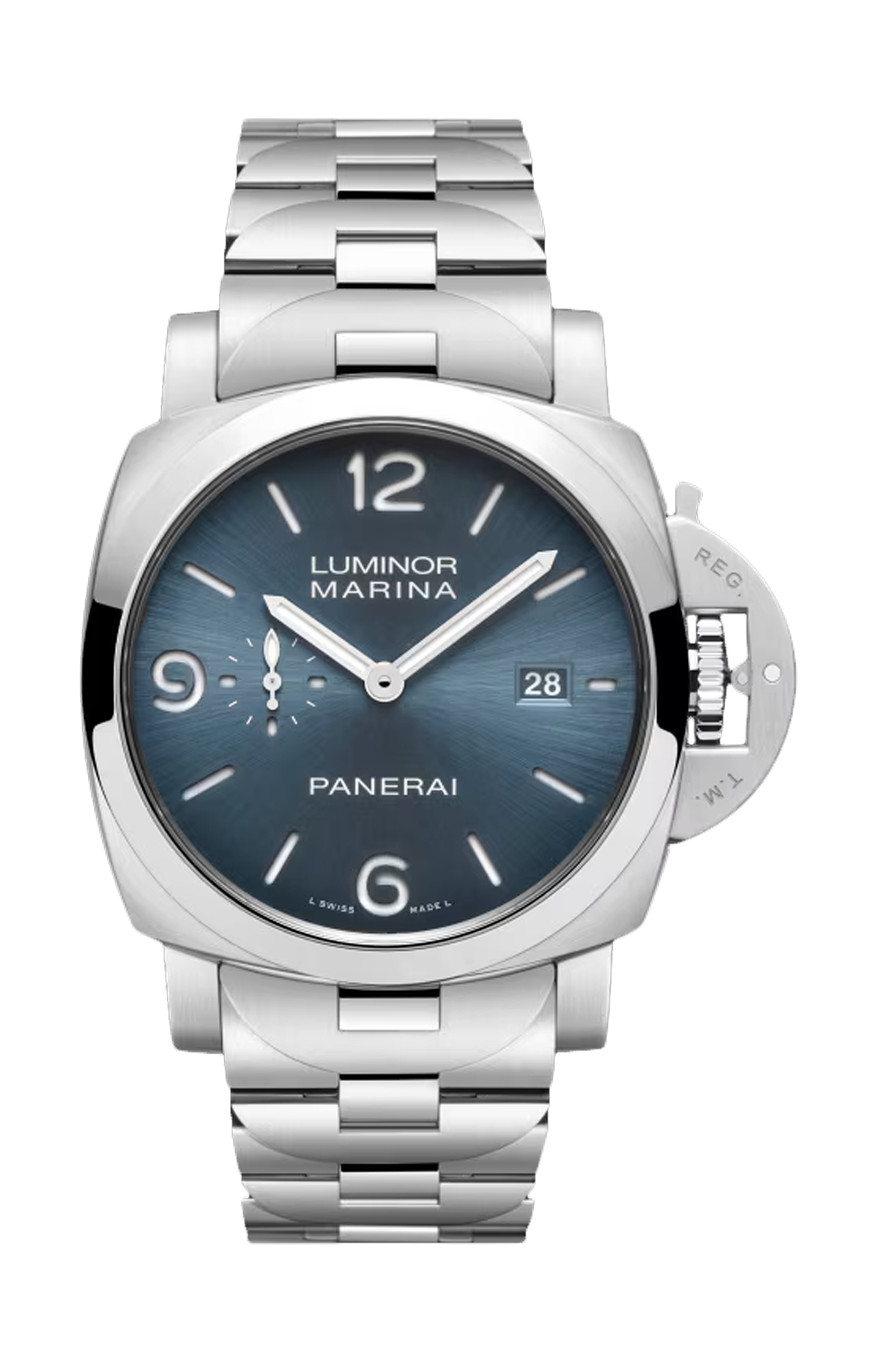 Audace evoluzione di un design iconico, questo modello si distingue per il bracciale a V d’avanguardia perfettamente rastremato, per un risultato raffinato e leggero al tempo stesso. La cassa da 44 mm in acciaio inossidabile ospita il movimento P.980, garanzia di precisione e di una riserva di carica di 3 giorni. Il quadrante azzurro con finitura satinée soleil, una novità assoluta per Panerai, aggiunge un tocco moderno. Il sistema di regolazione rapida garantisce adattabilità, mentre il sistema PAM CLICK™ consente una facile sostituzione del cinturino, per la massima versatilità.
