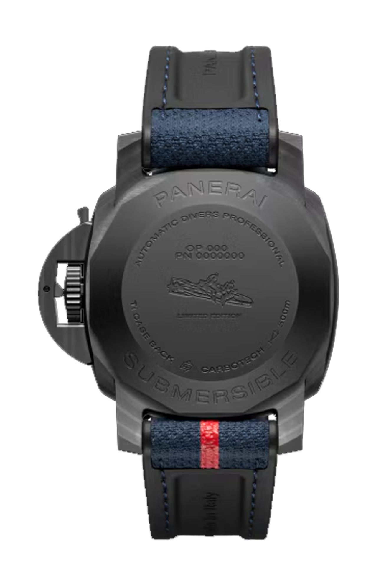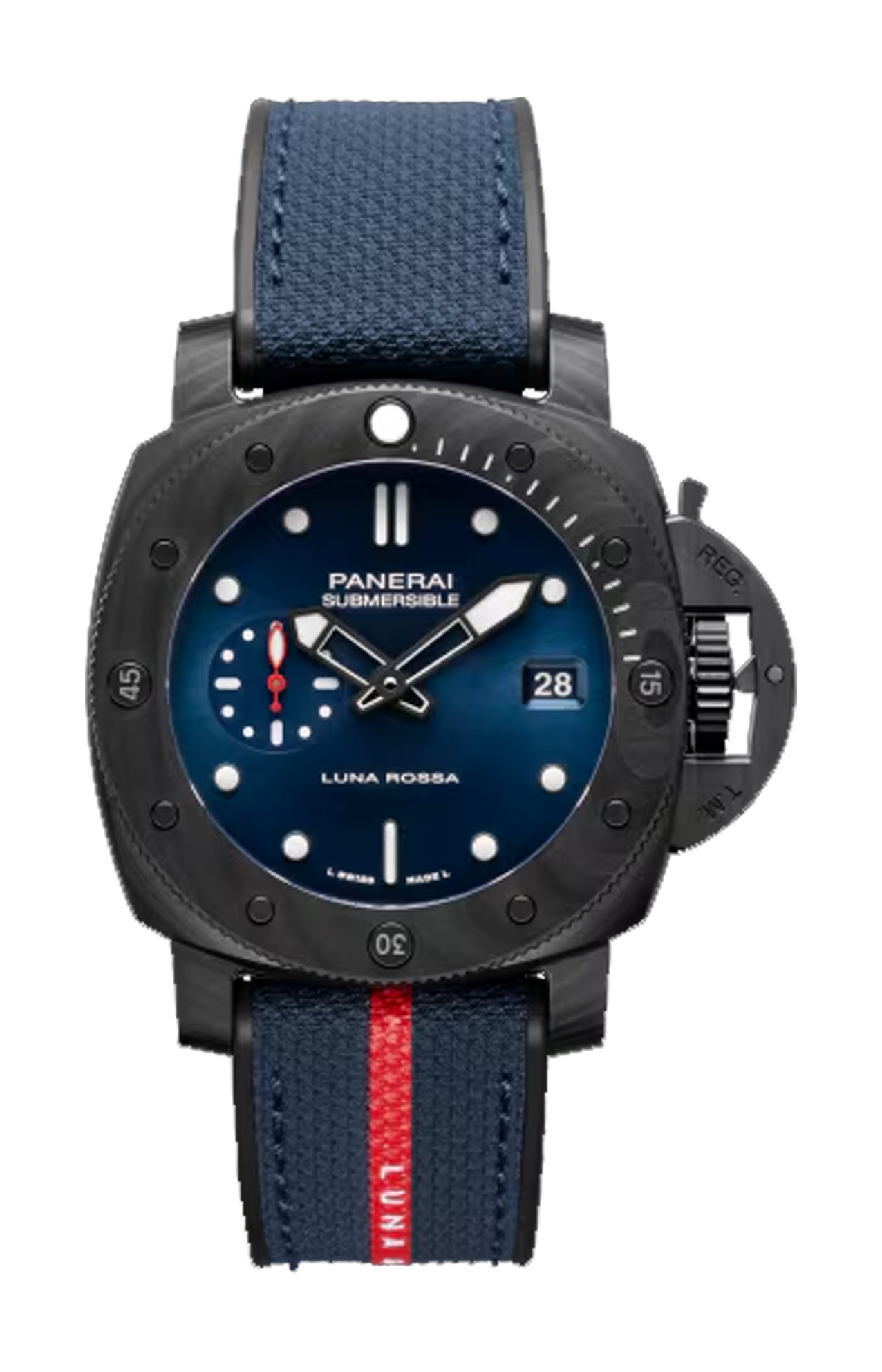 Il submersible Luna Rossa Carbotech™ PAM01563 è un’edizione limitata di soli 37 esemplari che commemora la 37a America’s Cup e che ha accompagnato il polso del capitano del team velico Luna Rossa Prada Pirelli Max Sirena durante le regate. Disponibile in esclusiva per l’e-commerce solo per 24 ore, questo segnatempo capsule si caratterizza per la cassa, la lunetta girevole e il ponte a leva in Carbotech™, la cui speciale struttura è stata progettata per esaltare l’estetica e le prestazioni del materiale.