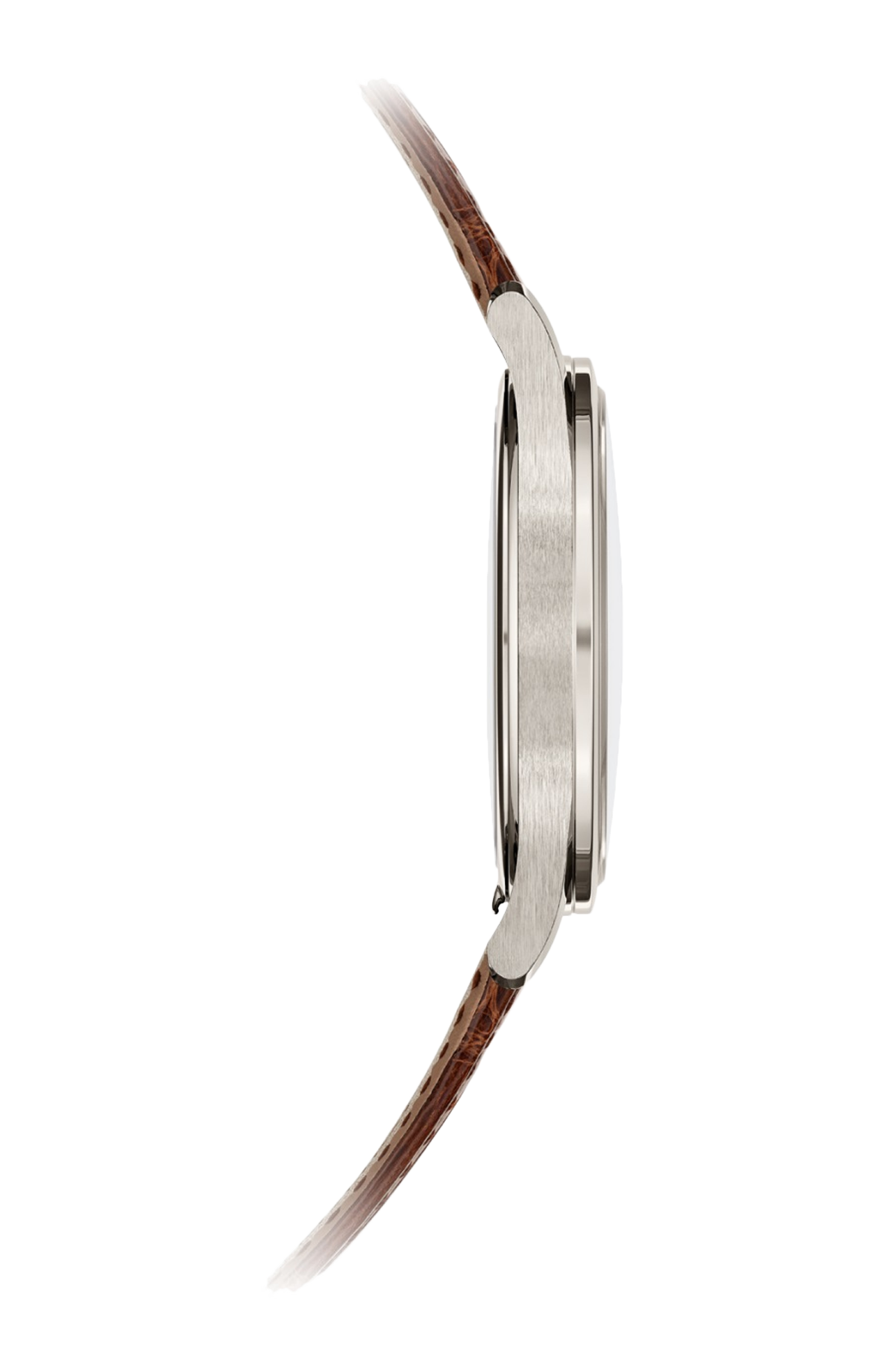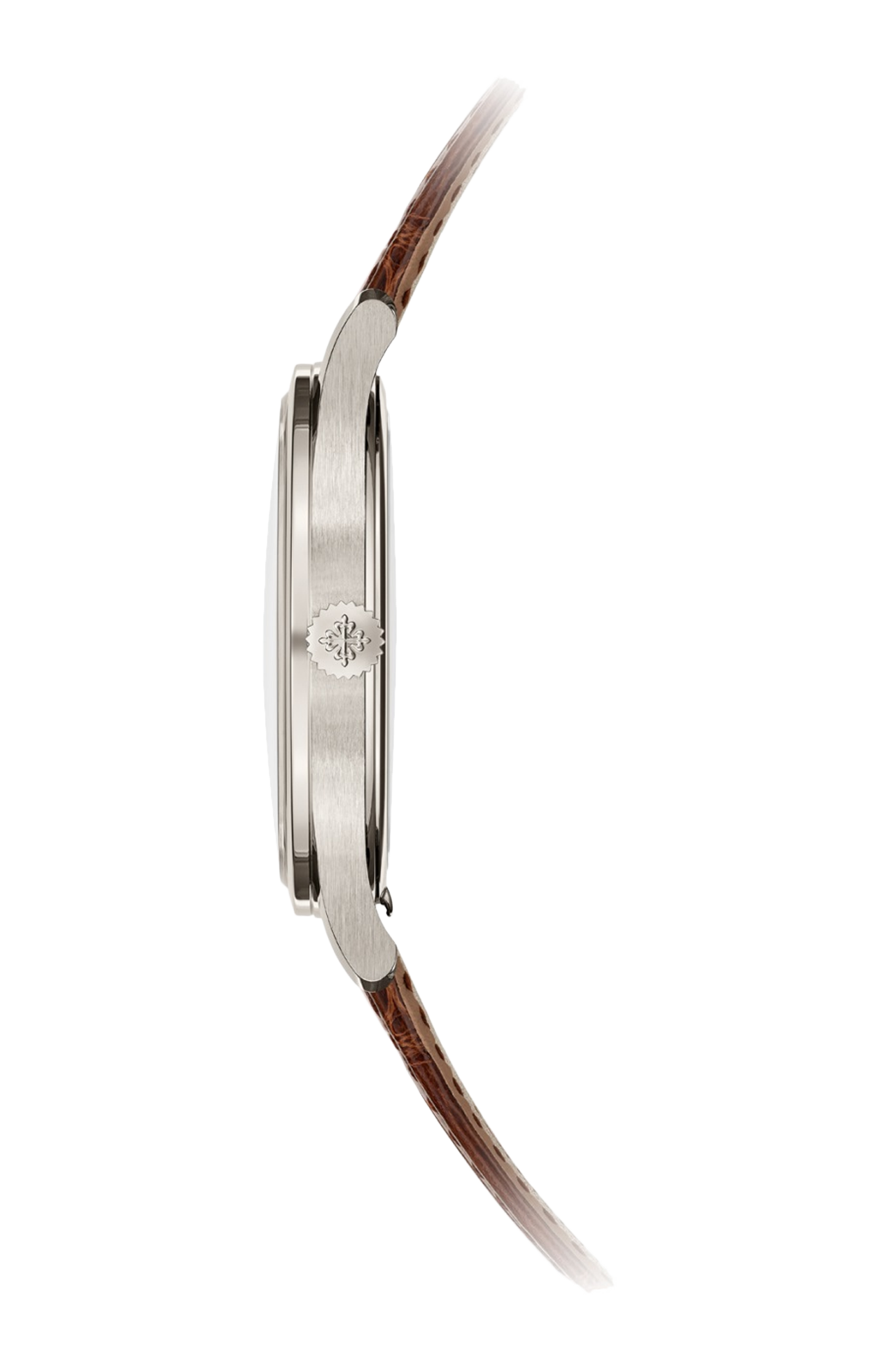 Quintessenza dell’eleganza senza tempo ed emblema perfetto dello stile Patek Philippe, la collezione Calatrava si arricchisce di un nuovo modello in platino, impreziosito dal tocco vintage di un quadrante opalino dorato in oro rosa dal design essenziale. La cassa lucida, di perfetta sobrietà, si distingue per la sua lunetta liscia e smussata, i fianchi satinati e le anse slanciate che si integrano armoniosamente con il cinturino in alligatore bruno cioccolato lucido. La corsa del tempo è scandita dal calibro 30-255 PS a carica manuale con riserva di carica di 65 ore e sistema “stop secondi” che consente una regolazione dell’ora al secondo.