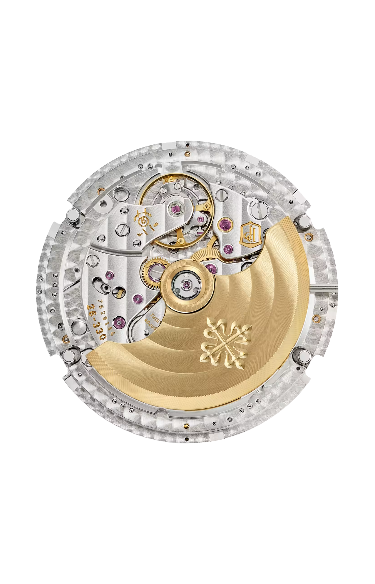 Inventato e brevettato da Patek Philippe nel 1996, l’ingegnoso meccanismo del Calendario Annuale visualizza il giorno, la data e il mese, richiedendo una sola correzione manuale l’anno, alla fine di febbraio. Le indicazioni del Calendario Annuale sono facili da leggere, con quadranti ausiliari per il giorno (tra ore 9 e ore 10) e il mese (tra ore 2 e ore 3), nonché una finestrella con cornice lavorata per la data a ore 6. A tutto ciò si aggiunge una visualizzazione estremamente precisa delle fasi lunari, che si discosta dal vero ciclo lunare di un solo giorno ogni 122 anni. Tutte le indicazioni del calendario possono essere regolate con facilità tramite i correttori incassati nella carrure. Il fondo cassa in cristallo di zaffiro consente di ammirare l’architettura e le finiture meticolose del calibro 26-330 S QA LU a carica automatica con i suoi 319 componenti.