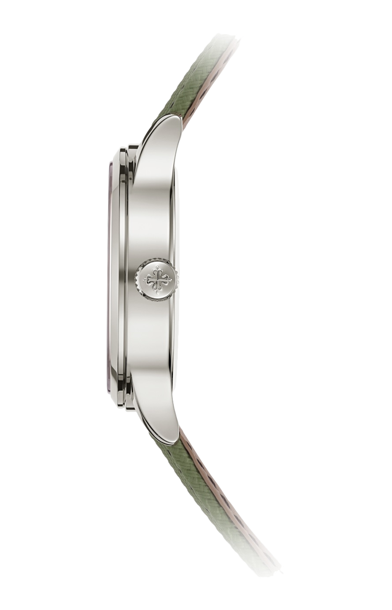 Patek Philippe reinterpreta il Calatrava Pilot Travel Time in oro bianco dotandolo di un elegante quadrante laccato avorio dal tocco vintage e di un cinturino in materiale composito verde kaki con motivo tessile. Nel cuore di questo orologio da viaggio originale, elegante e dalla forte personalità, batte il calibro 26-330 S C FUS, un movimento a carica automatica che vanta un sistema di visualizzazione del secondo fuso orario che si contraddistingue per la sua estrema semplicità di utilizzo. La visualizzazione della data a lancetta a ore 6 si regola automaticamente sull’ora locale, sia in avanti che indietro. I due pulsanti dei fusi orari dispongono di un sistema di sicurezza a vite brevettato che evita ogni modifica accidentale dell’ora locale.