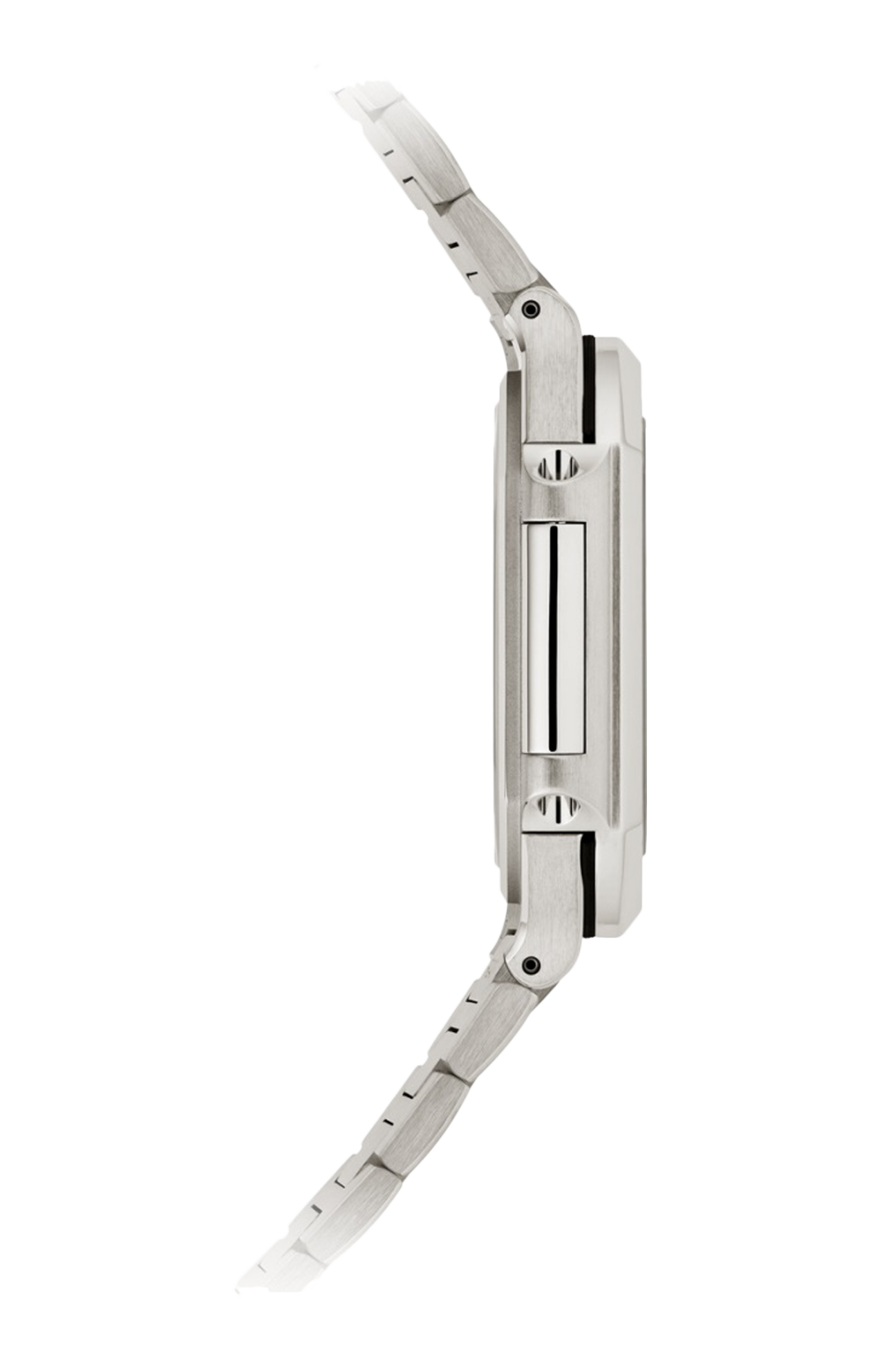 Il Cubitus è proposto in una nuova versione taglia medium del diametro di 40 mm, che si adatta a ogni polso. La geometria inedita della cassa quadrata dagli angoli arrotondati e dal profilo elegante, in oro bianco, è sottolineata dal contrasto tra finiture lucide e “satinato verticale”. Il quadrante ornato da un motivo orizzontale a rilievo è impreziosito da una delicata tonalità blu-grigio soleil. Il calibro 26-330 S C a carica automatica è dotato di uno “stop secondi” che consente una regolazione dell’ora al secondo. Il bracciale in oro bianco è dotato di un sistema di regolazione bloccabile e di una fibbia déployante brevettata Patek Philippe con quattro punti di attacco indipendenti.