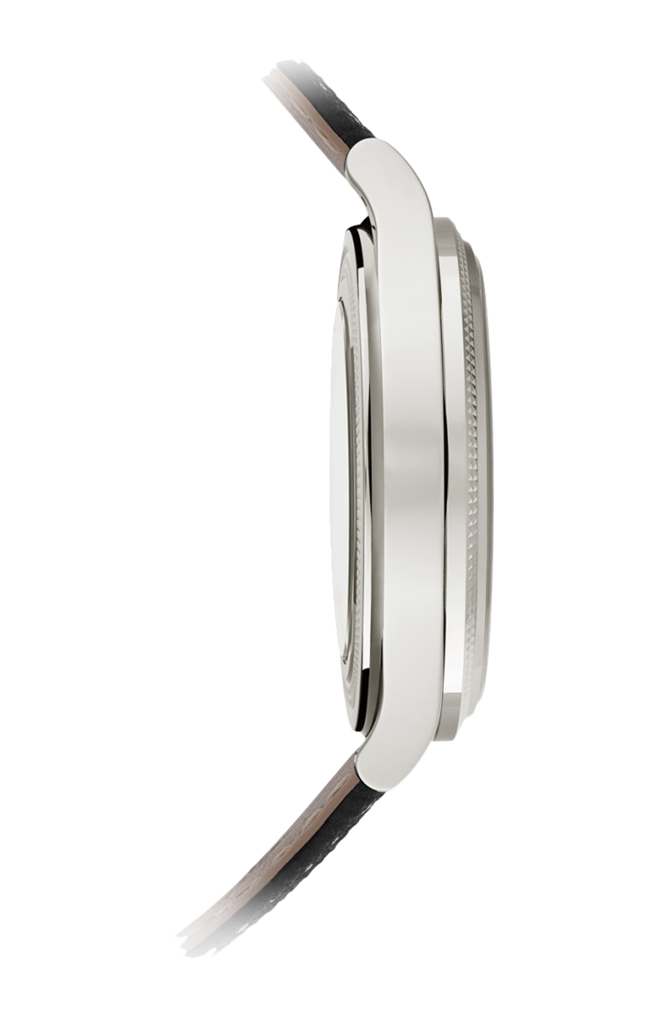 Patek Philippe reinterpreta il calendario perpetuo con lancetta data retrograda in una nuova versione in oro bianco dallo stile originale e contemporaneo, con quadrante in cristallo di zaffiro metallizzato grigio che lascia intravedere in trasparenza il cuore meccanico dell’orologio. La visualizzazione della data retrograda, i riquadri delle finestrelle del giorno, del ciclo degli anni bisestili, del mese e delle fasi lunari sono sottolineati da un filetto di colore grigio galvanico. La lunetta e il fondo sono impreziositi dal famoso motivo guilloché clous de Paris, uno degli emblemi più raffinati dello stile Patek Philippe.
