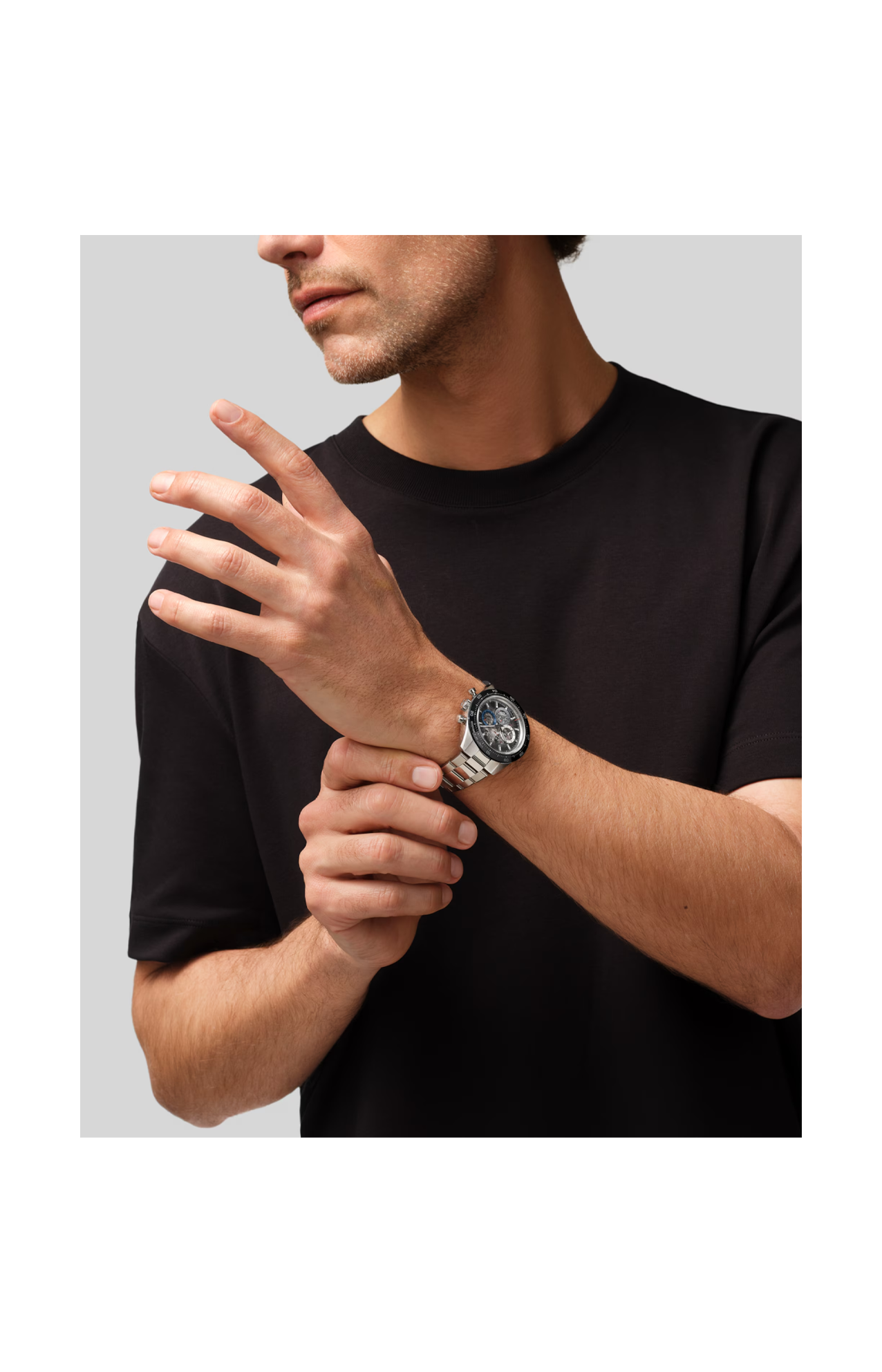 Il CHRONOMASTER Sport Skeleton è realizzato con cassa da 41 mm in acciaio inossidabile con lunetta in ceramica nera resistente ai graffi. Il quadrante in zaffiro sfumato è caratterizzato dai caratteristici contatori tricolori sovrapposti del marchio a ore 3-6-9. Rivela l’architettura scheletrata del movimento El Primero 3600 dotato di cronografo con precisione di lettura al 1/10 di secondo e riserva di carica di 60 ore. Fornito con un bracciale in acciaio con fibbia déployante micro-regolabile e un secondo cinturino in caucciù nero.
