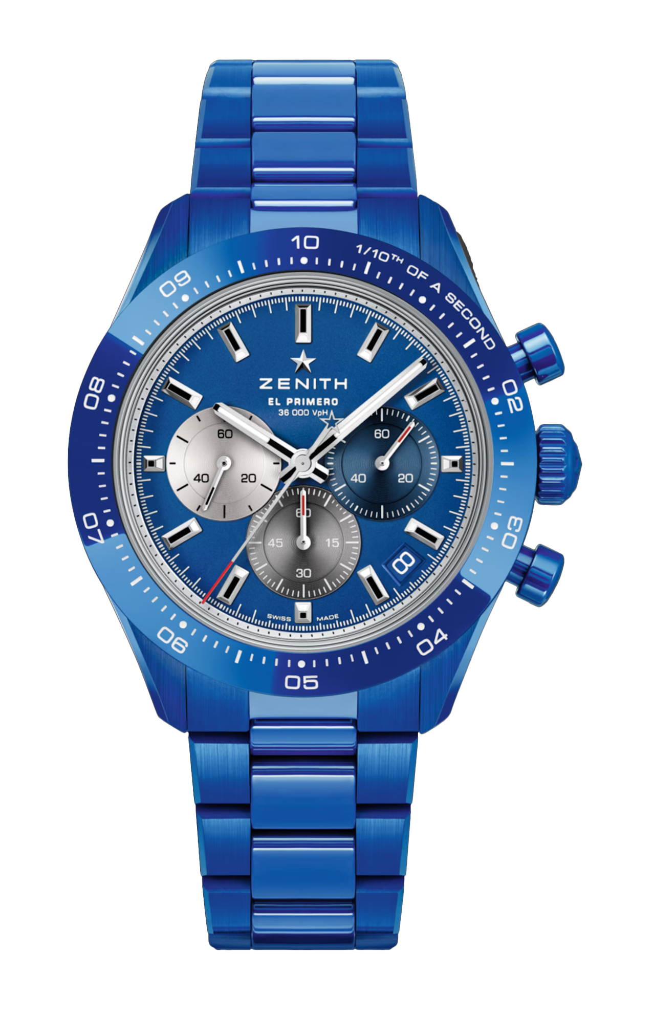 In occasione del suo 160° anniversario, Zenith presenta il Chronomaster Sport 160th Anniversary Edition. Disponibile per la prima volta in ceramica blu, questo segnatempo dall’eleganza sportiva presenta l’iconico quadrante tricolore della collezione, il movimento automatico El Primero 3600 con precisione di lettura al 1/10 di secondo e due cinturini blu: un bracciale in ceramica e un cinturino in caucciù, per offrire la massima versatilità. Questa edizione esclusiva mette in luce il savoir-faire di Zenith nel cronometraggio ad alta frequenza, ed è la compagna ideale in ogni avventura e in ogni sfida.