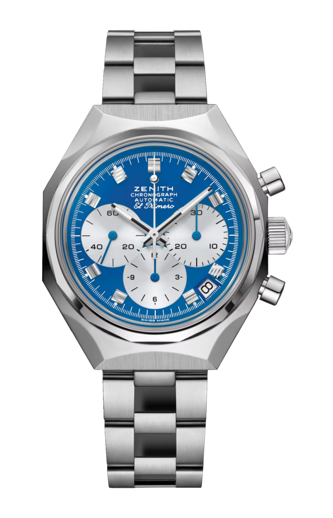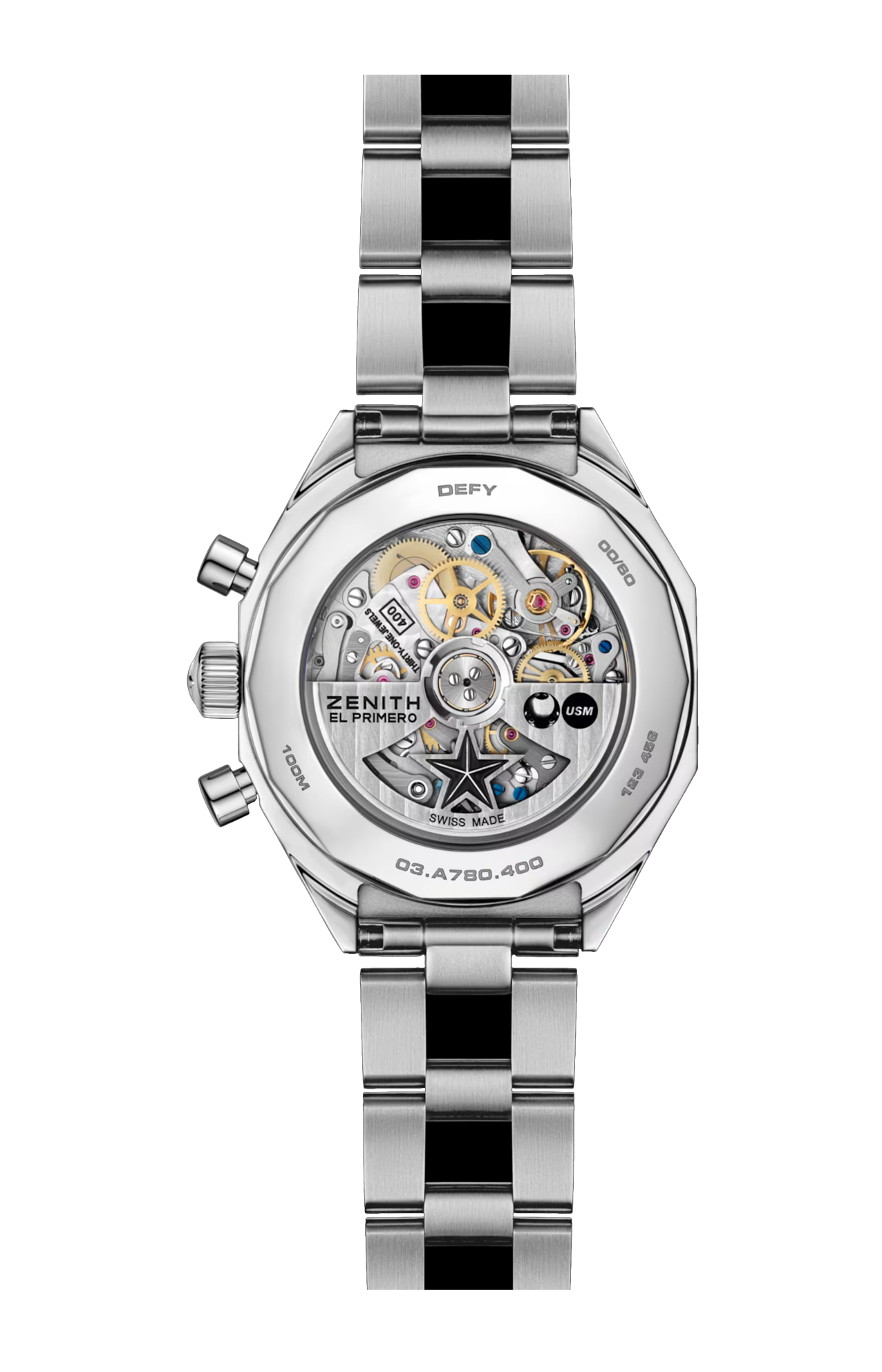 Quest’espressione di un “patrimonio immaginato” trae ispirazione da uno dei primi orologi da polso DEFY ma è alimentata dall’iconico movimento cronografico automatico El Primero con ruota a colonne. Riprende inoltre gli elementi di design di un’altra icona della stessa epoca, il sistema USM Haller. Presenta una robusta cassa ottagonale in acciaio inossidabile con lunetta a 14 lati, abbinata a un accattivante quadrante USM Gentian Blue. Il modello è corredato da un bracciale in acciaio effetto “scala”.
