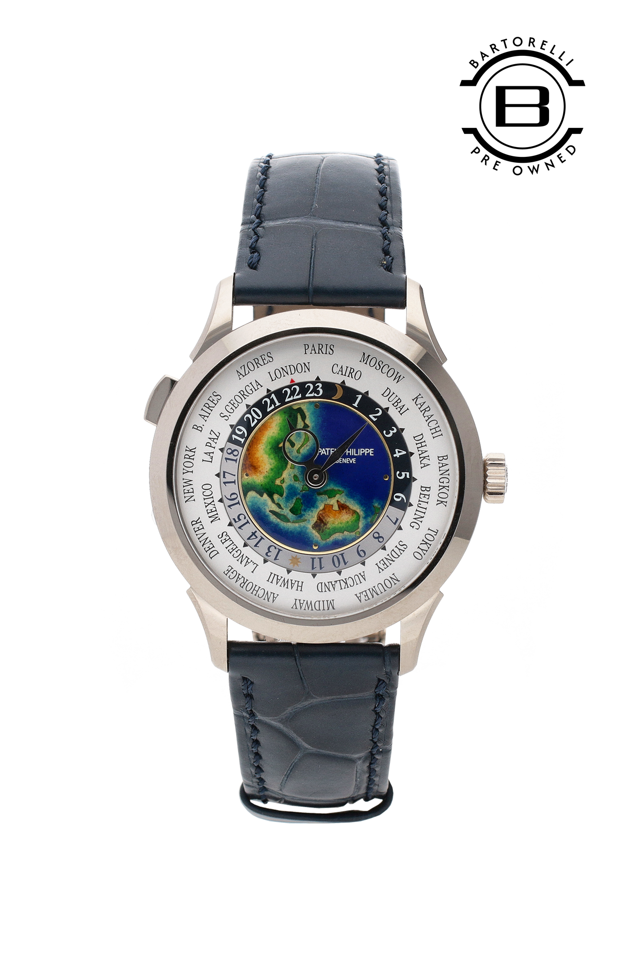 Dall’invenzione di questo meccanismo da parte di Louis Cottier negli anni trenta, i famosi orologi ora universale Patek Philippe sono stati spesso decorati con mappe in smalto grand feu cloisonné raffiguranti diverse aree del mondo. Nel 2022, Patek Philippe rende omaggio al dinamismo del sud-est asiatico e dell’Oceania declinando questo modello in una nuova versione in oro bianco con mappa in smalto grand feu cloisonné. Per coniugare geografia e poesia, il maestro artigiano delimita innanzitutto il contorno dei continenti e delle isole con un sottile filo d’oro. In seguito, riempie gli alveoli con smalti di diversi colori per riprodurre gli oceani e le terre emerse, passando a più riprese la placca smaltata al forno a temperatura elevata.