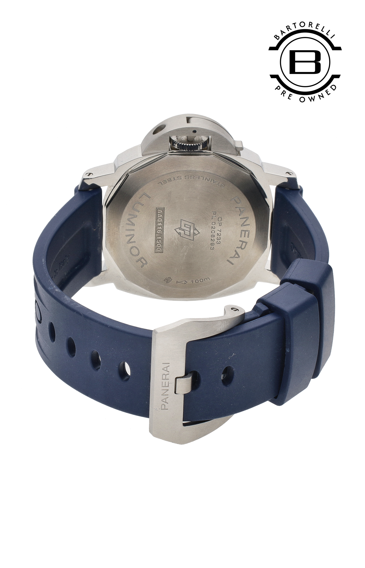 Il Panerai Luminor Blu Mare 44 mm, referenza PAM01085, è un orologio che incarna lo spirito marino e la forza stilistica del marchio Officine Panerai attraverso un design deciso ma raffinato: la cassa in acciaio AISI 316L da 44 mm di diametro e 13,05 mm di spessore, impreziosita da finiture lucide e satinate, è completata dal caratteristico dispositivo a leva per la corona che garantisce protezione e riconoscibilità immediata; il fondello è chiuso e a pressione, realizzato anch'esso in acciaio spazzolato. Il quadrante blu “Blu Mare” con decorazione soleil-spazzolata offre una profondità cromatica elegante, sul quale si stagliano numeri arabi e indici dipinti riempiti di Super-Luminova verde per leggibilità ottimale anche al buio, lancette rhodiate, e un piccolo secondino al 9. Il calibro di manifattura P.6000 è a carica manuale, dotato di Incabloc anti-urto, con frequenza di 21.600 alternanze/ora e riserva di carica di circa 72 ore, elemento che unisce praticità e fascino tradizionale. Il vetro è zaffiro per garantire resistenza ai graffi, il fondello solido protegge il meccanismo, e l’impermeabilità fino a 10 bar (100 metri) rende l’orologio adatto anche a chi vuole affidabilità in situazioni d’uso quotidiano. Il cinturino in pelle di vitello blu con cuciture beige conferisce un tocco di eleganza, mentre nella confezione è incluso anche un cinturino in gomma blu per maggiore versatilità. Questo modello è perfetto per chi desidera un segnatempo distintivo, con forte personalità, che coniuga heritage italiano, meccanica eccellente e stile marino con charme contemporaneo.